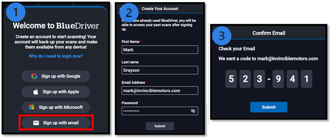 Before using BlueDriver or integrating with vAuto, you’ll need to create an account in the BlueDriver mobile app.