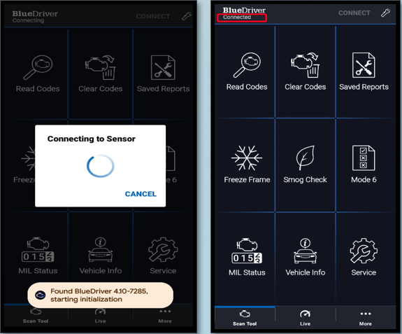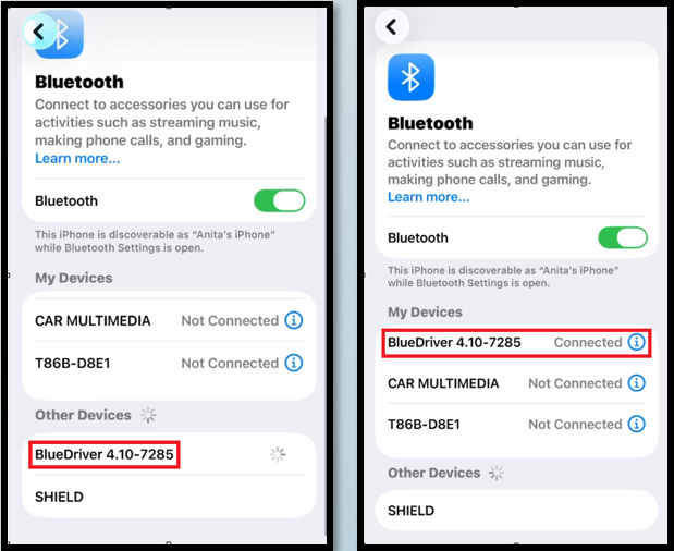 Finally, once the scanner is successfully added to Bluetooth devices, when you open the BlueDriver app, it should connect automatically.